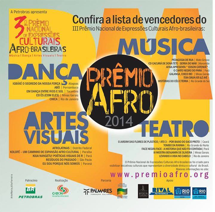 Brasil. A reunião da equipe avaliadora foi realizada no Rio de Janeiro, nos dias 18 e 19 de dezembro de 2014. Os trabalhos foram coordenados por Ruth Pinheiro, presidente do Centro de Apoio ao Desenvolvimento Osvaldo dos Santos Neves – CADON, com o acompanhamento do representante da Fundação Cultural Palmares, Sr. José Newton Guimarães – Chefe de Divisão – e Luis Carlos do Nascimento – Gestor de Projetos Culturais da Petrobras.